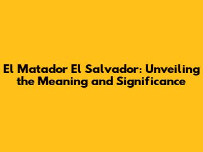 El Matador El Salvador: Meaning & Significance