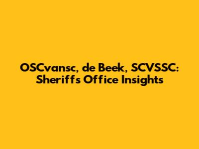 OSCvansc, De Beek, SCVSSC: Sheriff's Office Insights