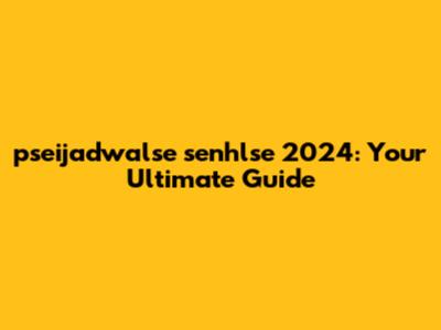 Pseijadwalse Senhlse 2024: Your Ultimate Guide