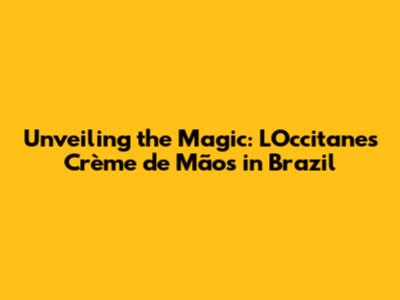 Unveiling The Magic: L'Occitane's Crème De Mãos In Brazil