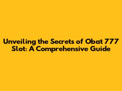 Unveiling The Secrets Of Obat 777 Slot: A Comprehensive Guide