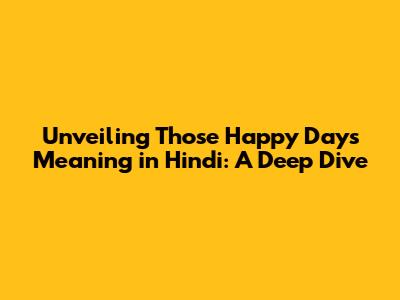 Unveiling 'Those Happy Days' Meaning In Hindi: A Deep Dive